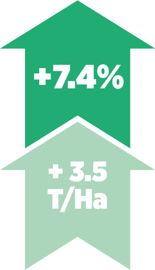 • Consequent hogere opbrengsten over diverse seizoenen (+8,6% gemiddeld, +4,1 t/ha).